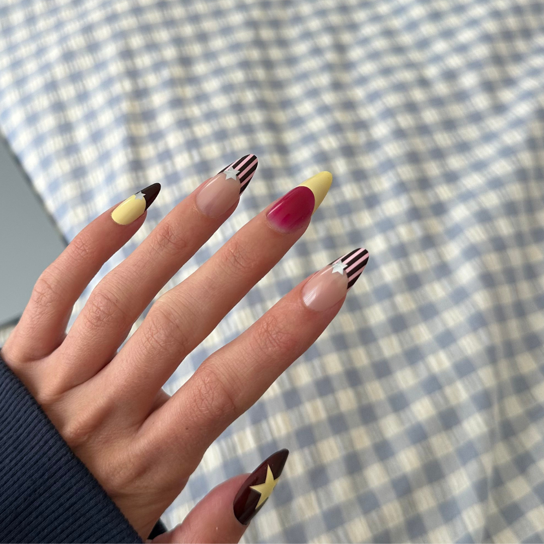 Select the best fit for each nail bed. The press-on should sit edge to edge without touching your skin.Apply